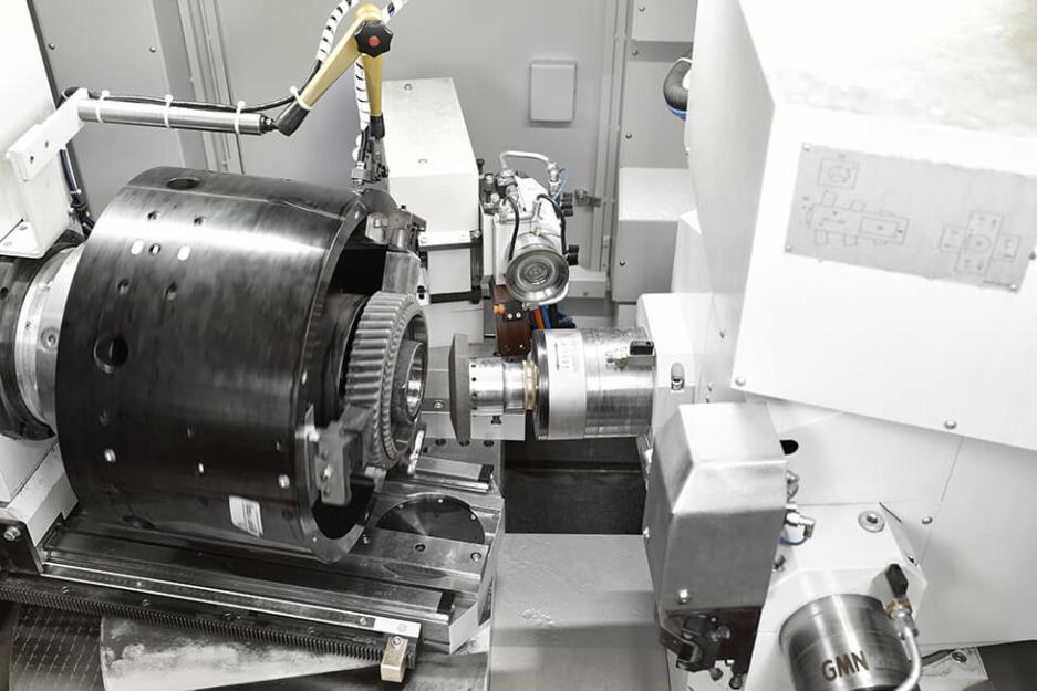 Rectification de diamètres intérieurs, diamètres extérieurs, filetages, faces, formes non rondes, cônes et jig. Grâce à l'axe B0 pivotant de +20°/–10°, même les petits rayons ne constituent plus un obstacle. Tout en un seul serrage.